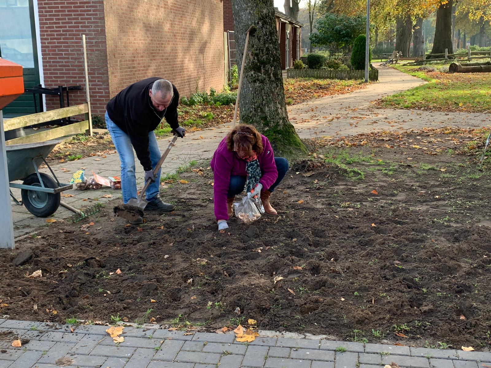 Leden van de werkgroep ‘rozen Kerkstraat-West’ zijn inmiddels aan de slag gegaan met het planten van de bollen.