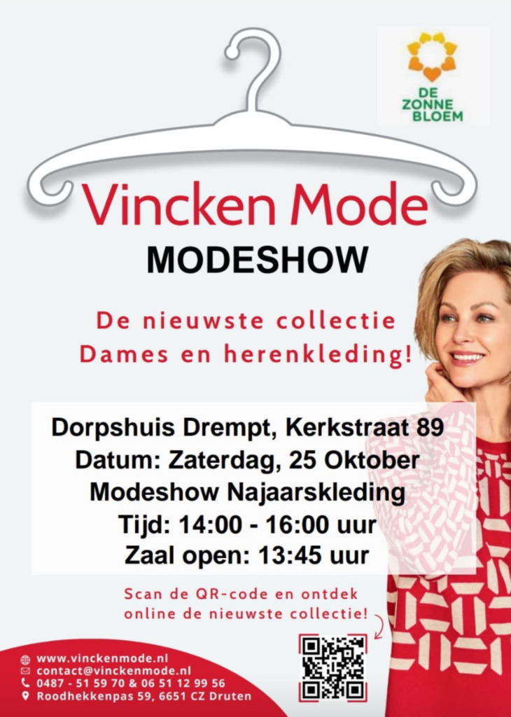 Modeshow georganiseerd door De Zonnebloem afdeling Hummelo, Keppel en Drempt (met aansluitend verkoop).