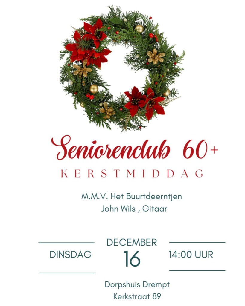 Kerstmiddag in het dialect m.m.v. 't Buurdeerntjen Anne Marie Onstenk en zanger John Wils met gitaar.