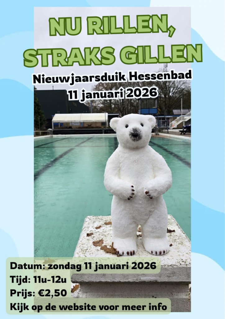 Wat je ook kiest, je start het jaar frisser dan ooit. Deelnamekosten zijn slechts €2,50 per persoon, ongeacht deelname aan de bokaal of alleen fun. Meld je aan via de website op de pagina https://hessenbad.nl/hessenbad-nieuwjaarsduik-11-januari. Durf jij? Nu rillen, straks gillen!