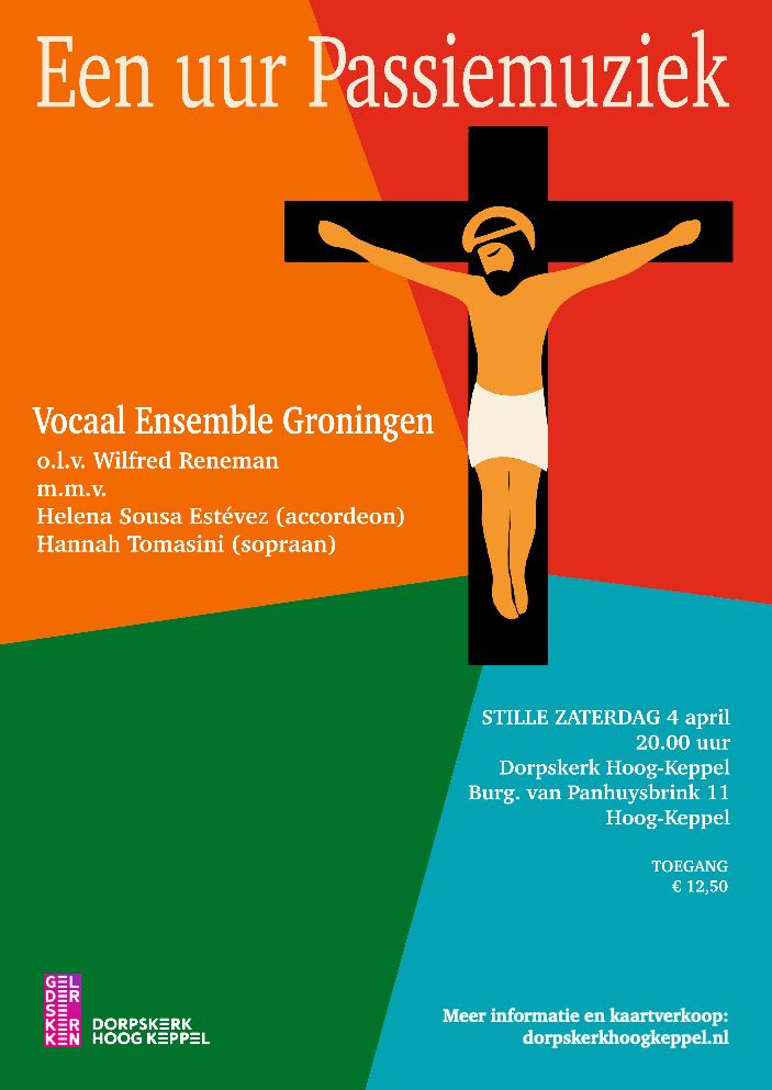 Een uur Passiemuziek in de Dorpskerk van Hoog-Keppel. Het Vocaal Ensemble Groningen heeft een traditie hoog te houden voor wat betreft hun Passieconcerten op Goede Vrijdag en Stille Zaterdag. Daarbij wordt steevast gekozen voor onbekende, maar altijd interessante vocale muziek rondom de Lijdenstijd.