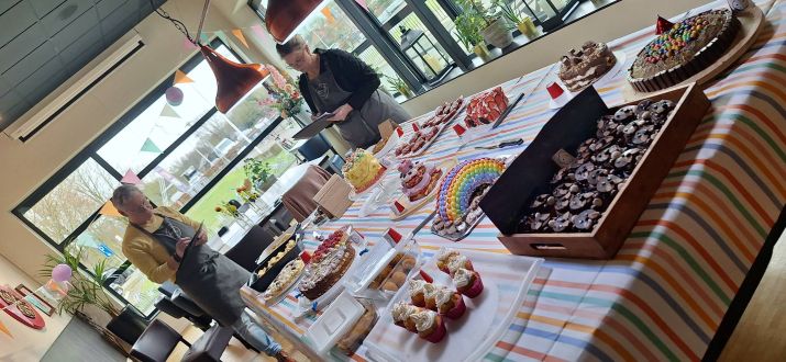 Toen de jury klaar was, mocht het aanwezig publiek zich eindelijk storten op al die lekkernijen. Daarbij kregen ze ook een ‘kaarsstokje’ mee, waarmee ze een stem konden uit brengen voor de publieksprijs. De ‘kaarsstokjes’ werden verzameld op een etalage-taart, wat een vrolijk resultaat werd.